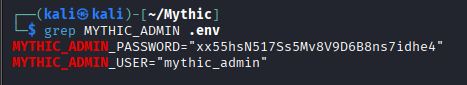 As we saw in the previous section, this file contains the passwords of the main services in the Mythic environment.