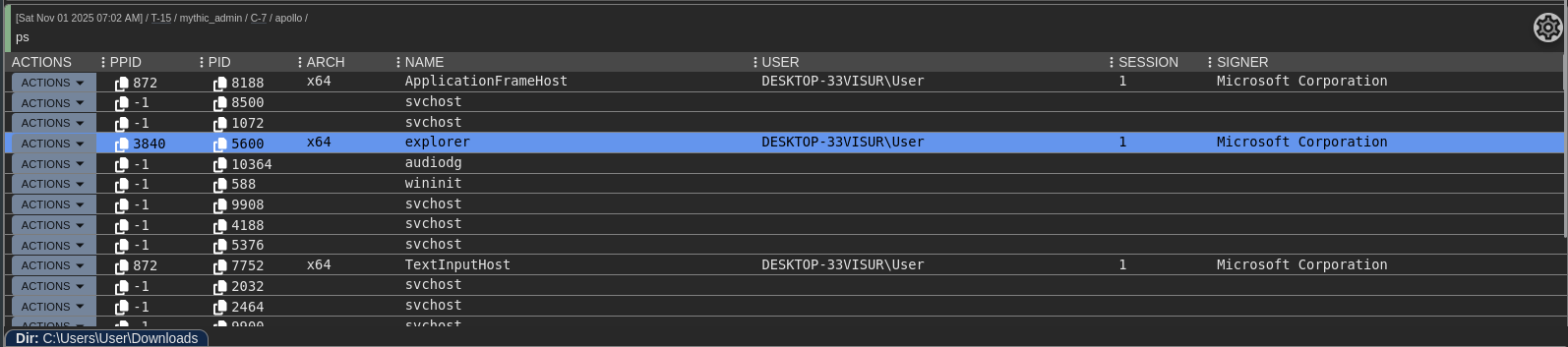 Send ps to get a full interactive process view inside the callback tab. It’s a convenient way to inspect running processes and then pick an action from the UI.